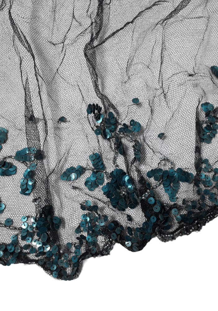 Antique Black Net and Sequin Bonnet Veil Scrap Material Trim Mourning Textile