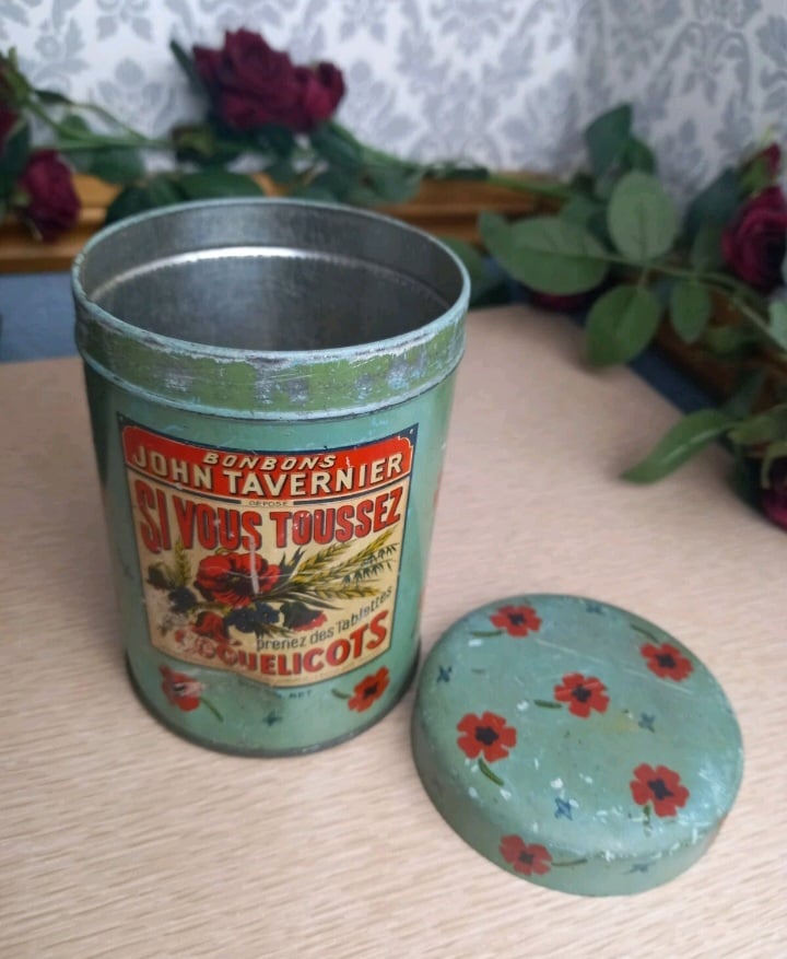 Antique Candy Tin John Tavernier French Bonbons Poppy Tablets 500g Prop Display