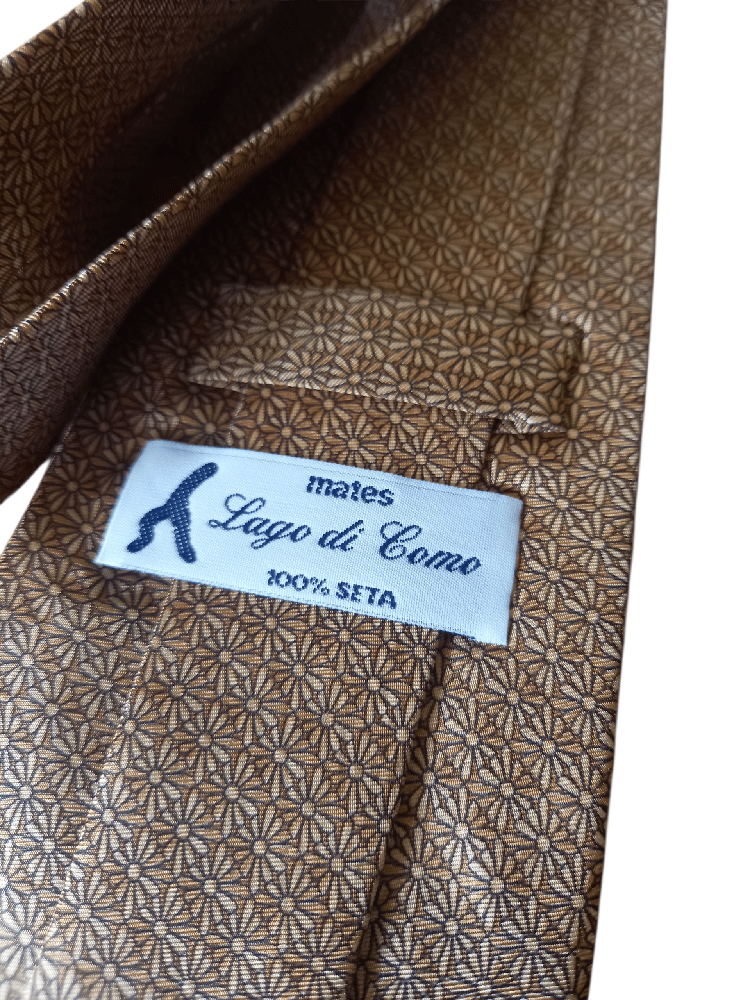 Mens Silk Tie Mates Lago Di Como Floral Geometric Gold Brown New Old Stock