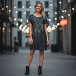 Michael Kors Sequin Dress Black & Silver Sparkly Party Cocktails UK Size 10/12