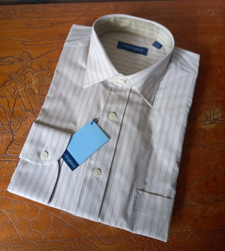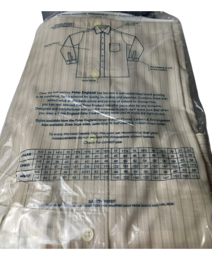 Peter England Shirt 16" (41cm) Collar Beige Striped New in Packet Easy Care