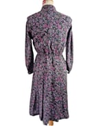Vintage Floral Dress Winter Colours Day Purple Black Green UK Size 6-8