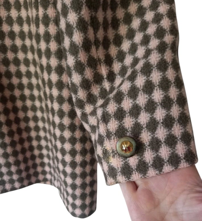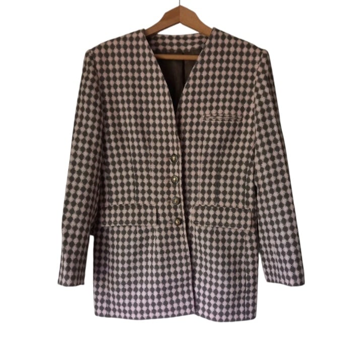 Vtg Loretta Bloom Blazer Jacket Pink/Brown Wool Blend Harlequin Pattern UK 16
